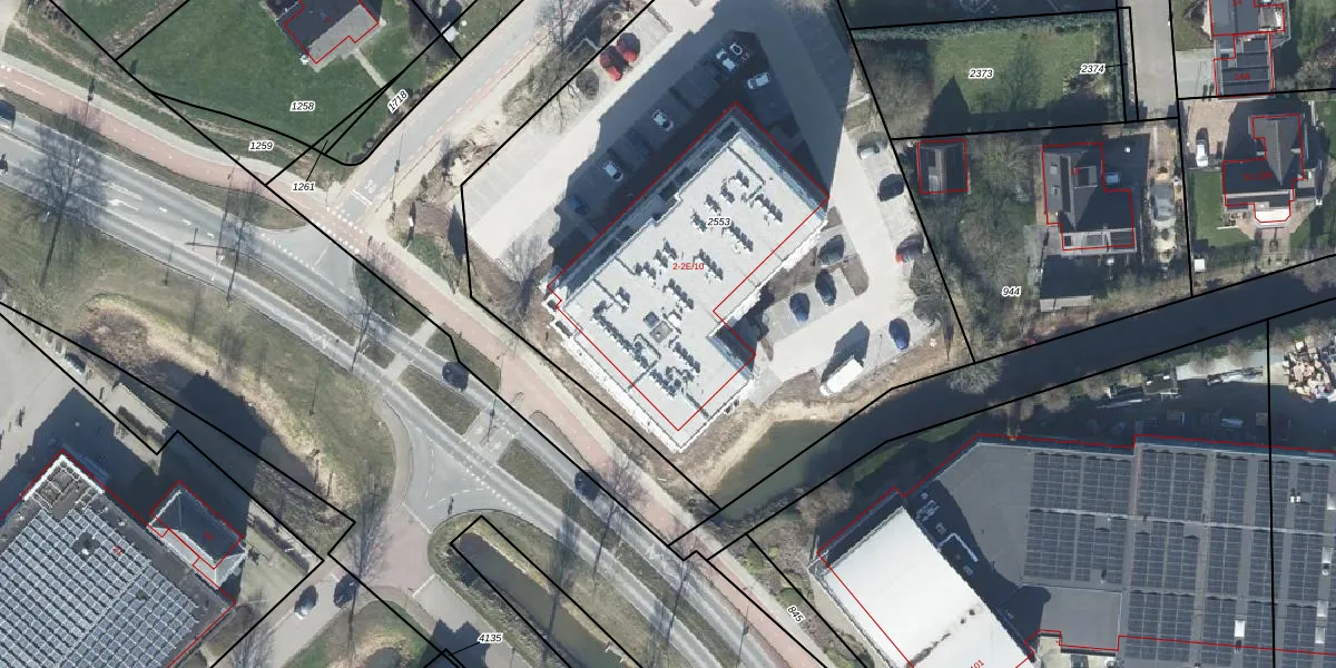 Het perceel waarop het adres ligt is DTN03-D-2553. De afkorting 'DTN03' staat voor kadastrale gemeente Druten. De gemiddelde perceeloppervlakte in de kadastrale gemeente Druten is 2952,08 m². Dit perceel is met zijn 3956 m² dus groter dan gemiddeld. Het grootste perceel in de kadastrale gemeente is 80,8 ha. Het kleinste perceel heeft een oppervlakte van 0 m². Er zijn 51 adressen aanwezig op het perceel. In de Basisregistratie Kadaster (BRK) werden de grenzen van het perceel geregistreerd op 02-04-2024.