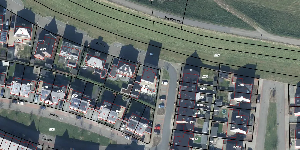 Het perceel waarop Kruier 16 staat heeft een oppervlakte van 405 m². Dit is een groot perceel. De perceeloppervlakte wordt geregistreerd door het Kadaster. Gedetailleerde informatie over de maten van dit perceel kunt u vinden in het rapport Kadastrale kaart met maatvoering van Kruier 16.