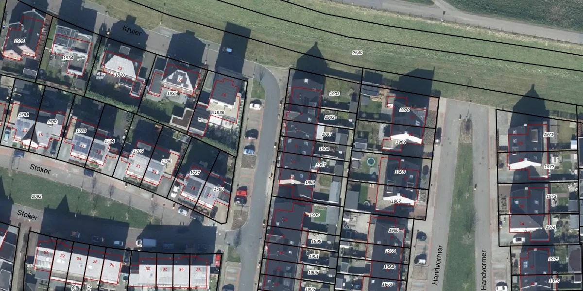 Het perceel waarop Kruier 9 staat heeft een oppervlakte van 135 m². Dit is een middelgroot perceel. De perceeloppervlakte wordt geregistreerd door het Kadaster. Gedetailleerde informatie over de maten van dit perceel kunt u vinden in het rapport Kadastrale kaart met maatvoering van Kruier 9.