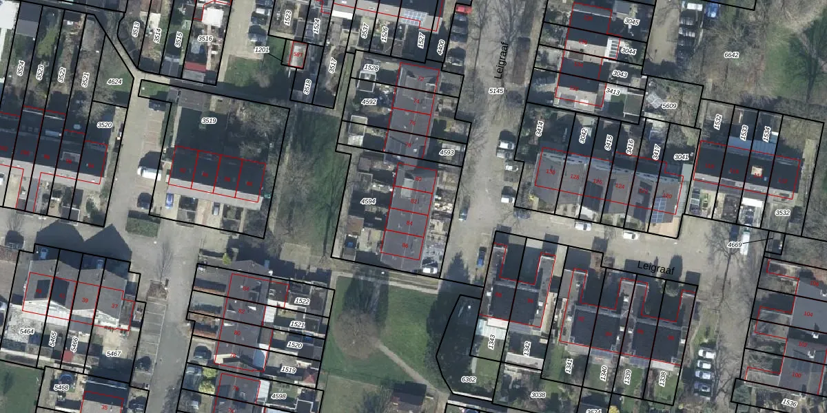 Het perceel waarop Leigraaf 82 staat heeft een oppervlakte van 749 m². Dit is een groot perceel. De perceeloppervlakte wordt geregistreerd door het Kadaster. Gedetailleerde informatie over de maten van dit perceel kunt u vinden in het rapport Kadastrale kaart met maatvoering van Leigraaf 82.
