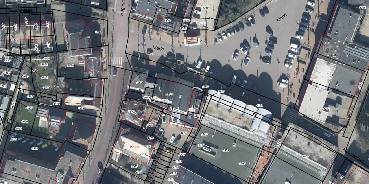 Het perceel waarop Markt 6 staat heeft een oppervlakte van 355 m². Dit is een groot perceel. De perceeloppervlakte wordt geregistreerd door het Kadaster. Gedetailleerde informatie over de maten van dit perceel kunt u vinden in het rapport Kadastrale kaart met maatvoering van Markt 6.