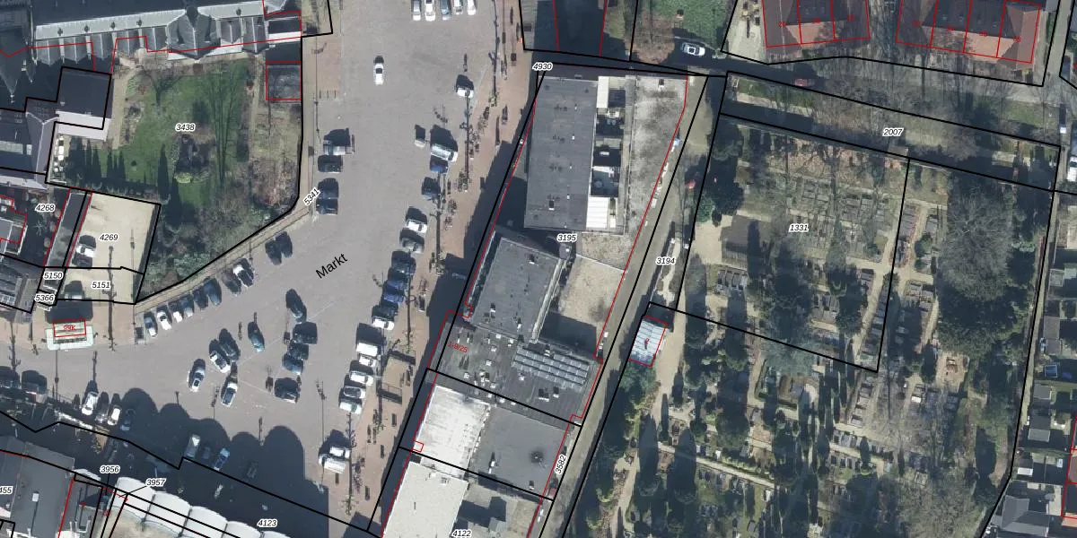 Markt 9-25 is gelegen op kadastraal perceel DTN03B3195. Deze kadastrale aanduiding is uniek en wordt gebruikt door het Kadaster om eigendomsrechten en andere zakelijke rechten vast te leggen. Het perceel maakt onderdeel uit van de kadastrale gemeente Druten.