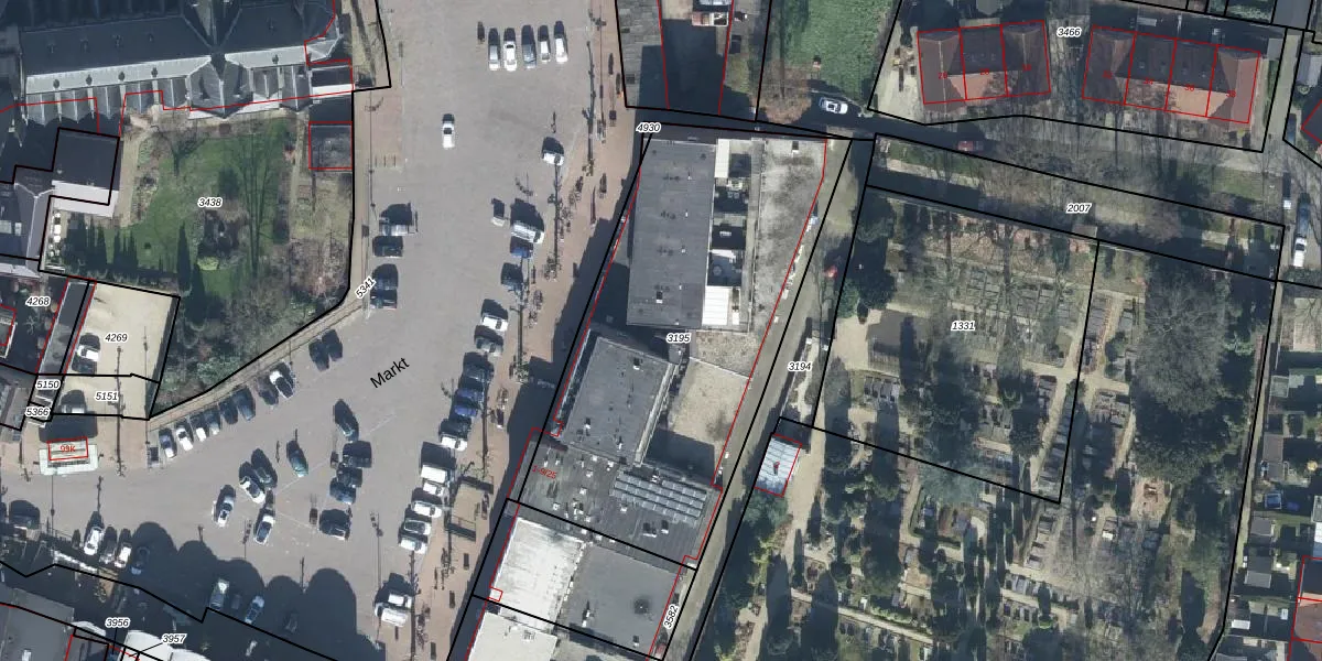 Markt 9-24 is gelegen op kadastraal perceel DTN03B3195. Deze kadastrale aanduiding is uniek en wordt gebruikt door het Kadaster om eigendomsrechten en andere zakelijke rechten vast te leggen. Het perceel maakt onderdeel uit van de kadastrale gemeente Druten.