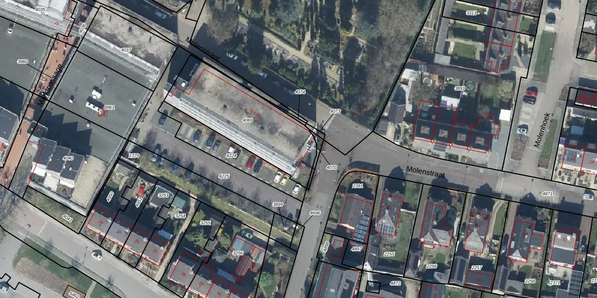 Het perceel waarop Markt 98 staat heeft een oppervlakte van 938 m². Dit is een groot perceel. De perceeloppervlakte wordt geregistreerd door het Kadaster. Gedetailleerde informatie over de maten van dit perceel kunt u vinden in het rapport Kadastrale kaart met maatvoering van Markt 98.