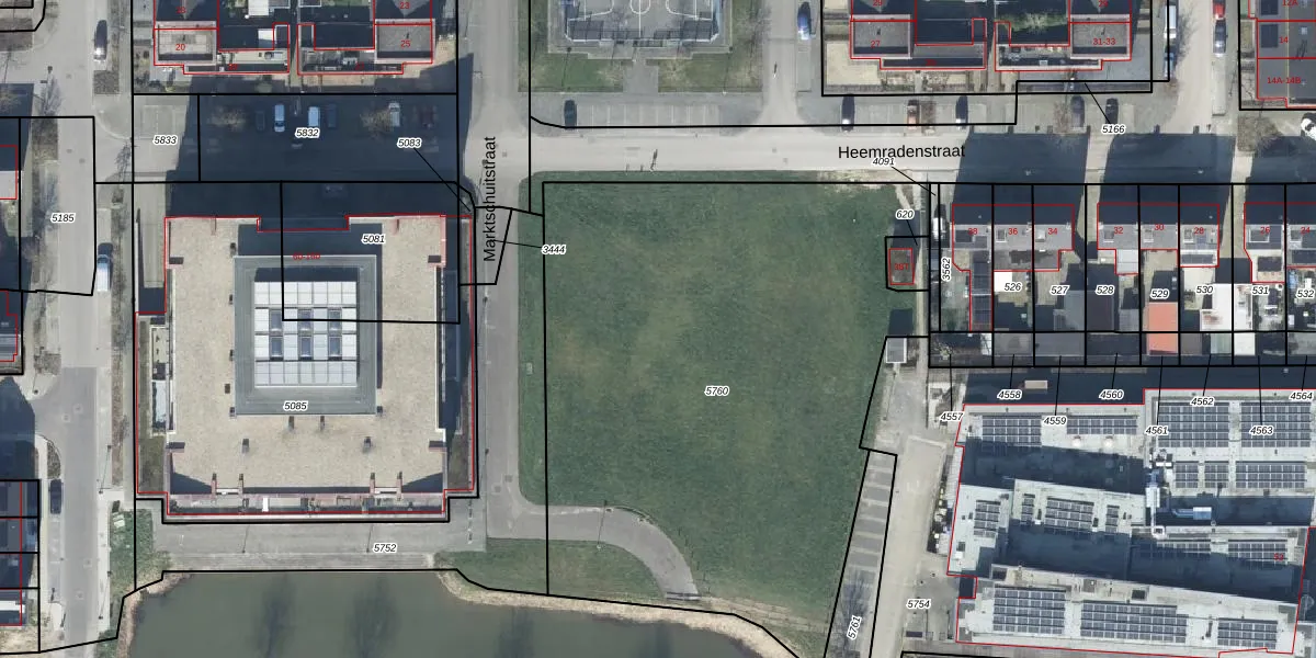 Het perceel waarop Marktschuitstraat 15 staat heeft een oppervlakte van 3355 m². Dit is een zeer groot perceel. De perceeloppervlakte wordt geregistreerd door het Kadaster. Gedetailleerde informatie over de maten van dit perceel kunt u vinden in het rapport Kadastrale kaart met maatvoering van Marktschuitstraat 15.