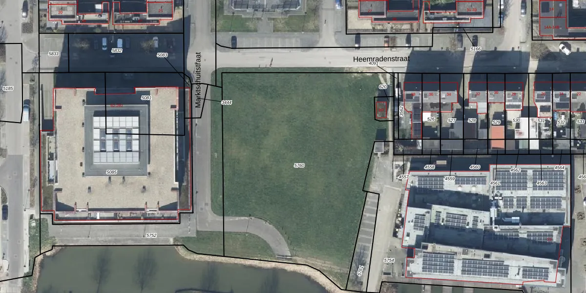 Het perceel waarop Marktschuitstraat 27 staat heeft een oppervlakte van 3355 m². Dit is een zeer groot perceel. De perceeloppervlakte wordt geregistreerd door het Kadaster. Gedetailleerde informatie over de maten van dit perceel kunt u vinden in het rapport Kadastrale kaart met maatvoering van Marktschuitstraat 27.