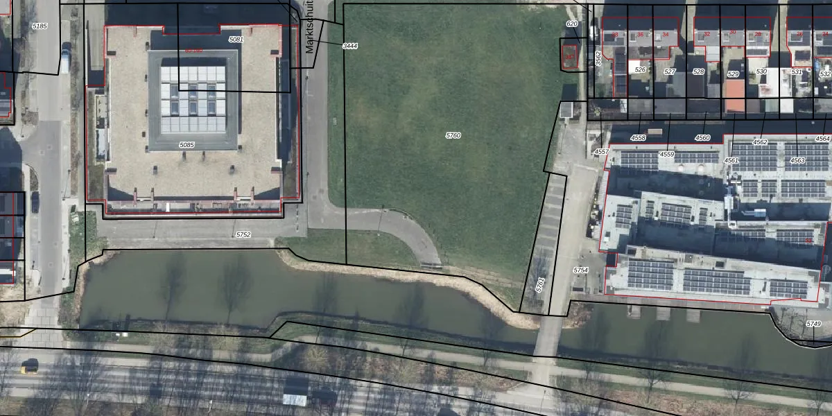 Het perceel waarop Marktschuitstraat 67 staat heeft een oppervlakte van 3355 m². Dit is een zeer groot perceel. De perceeloppervlakte wordt geregistreerd door het Kadaster. Gedetailleerde informatie over de maten van dit perceel kunt u vinden in het rapport Kadastrale kaart met maatvoering van Marktschuitstraat 67.