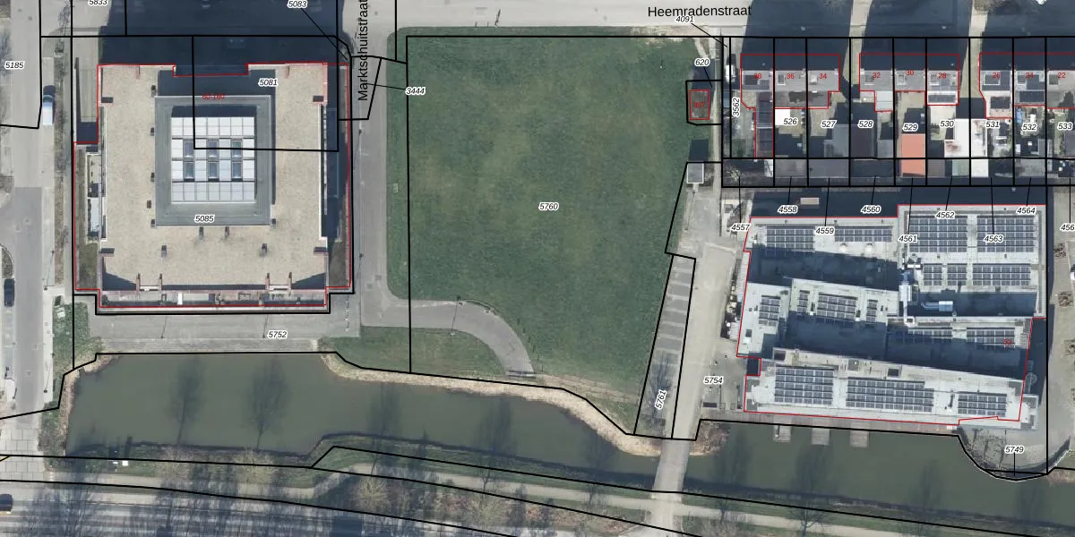 Het perceel waarop Marktschuitstraat 89 staat heeft een oppervlakte van 3355 m². Dit is een zeer groot perceel. De perceeloppervlakte wordt geregistreerd door het Kadaster. Gedetailleerde informatie over de maten van dit perceel kunt u vinden in het rapport Kadastrale kaart met maatvoering van Marktschuitstraat 89.