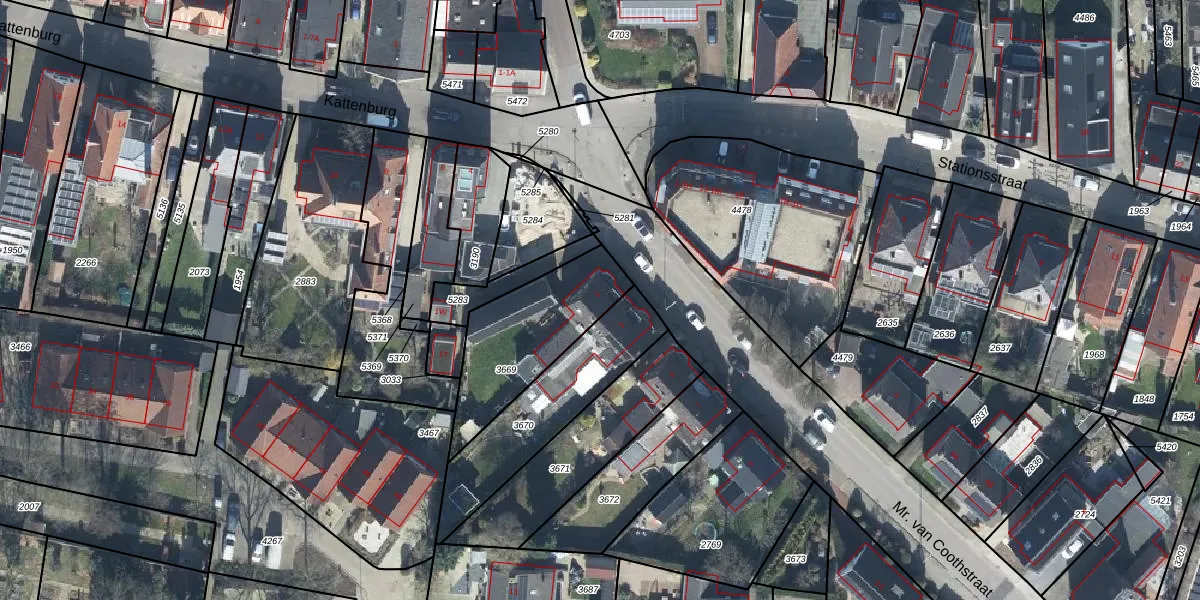 Mr. van Coothstraat 1 is gelegen op kadastraal perceel DTN03B3669. Deze kadastrale aanduiding is uniek en wordt gebruikt door het Kadaster om eigendomsrechten en andere zakelijke rechten vast te leggen. Het perceel maakt onderdeel uit van de kadastrale gemeente Druten.