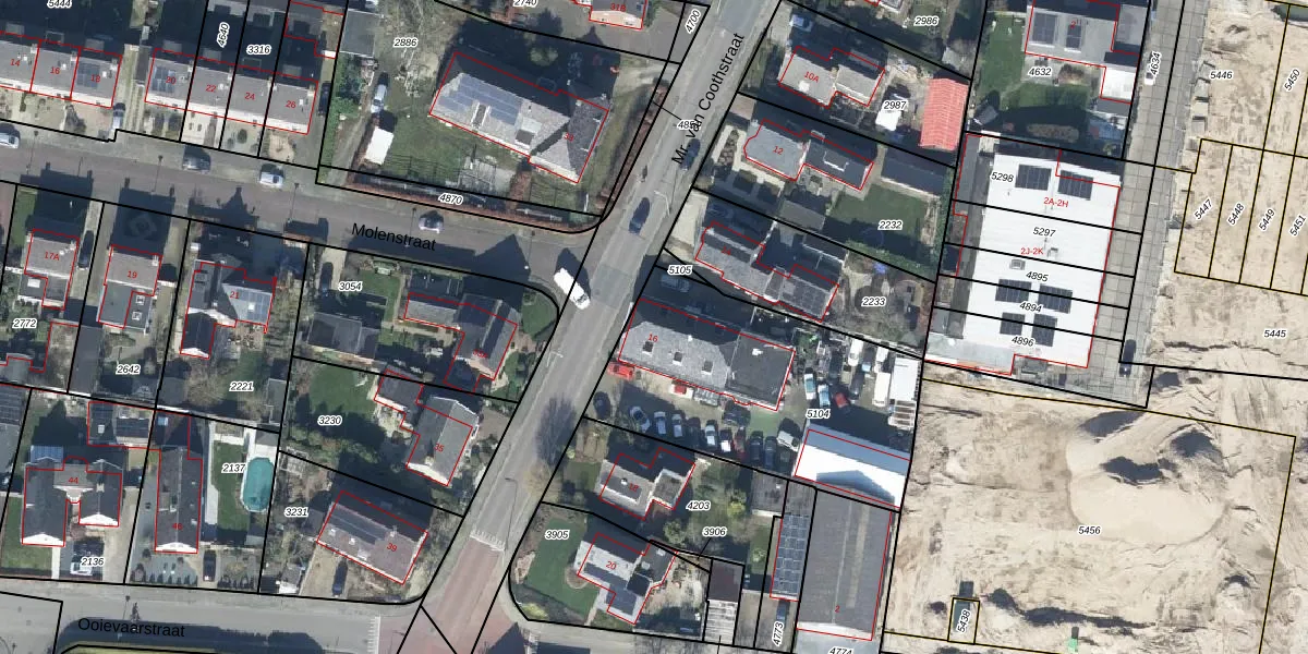 Mr. van Coothstraat 16 is gelegen op kadastraal perceel DTN03B5104. Deze kadastrale aanduiding is uniek en wordt gebruikt door het Kadaster om eigendomsrechten en andere zakelijke rechten vast te leggen. Het perceel maakt onderdeel uit van de kadastrale gemeente Druten.