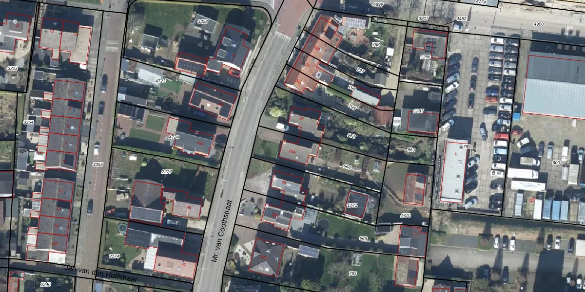 Het perceel waarop Mr. van Coothstraat 26-A staat heeft een oppervlakte van 505 m². Dit is een groot perceel. De perceeloppervlakte wordt geregistreerd door het Kadaster. Gedetailleerde informatie over de maten van dit perceel kunt u vinden in het rapport Kadastrale kaart met maatvoering van Mr. van Coothstraat 26-A.