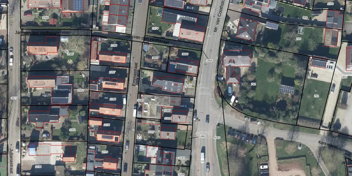 Gebruik de zoekbalk of klik op een perceel voor informatie over de adressen binnen dit perceel.