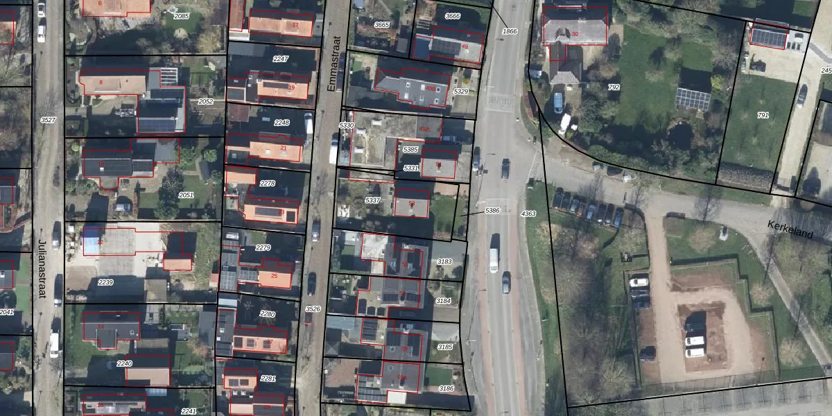 Het adres ligt op het perceel DTN03-B-5337, dat zich in de kadastrale gemeente Druten bevindt. Het perceel is kleiner dan gemiddeld in Druten. Het perceel is 411 m² groot, terwijl het gemiddelde ligt op 2920,31 m². De grootste perceeloppervlakte in de kadastrale gemeente is 80,8 ha. De kleinste oppervlakte bedraagt 0 m². Op het perceel bevinden zich geen andere adressen. De laatste wijziging in het de Basisregistratie Kadaster (BRK) was op 19-10-2021.