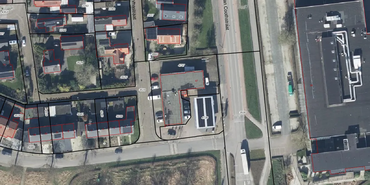 Mr. van Coothstraat 69 is gelegen op kadastraal perceel DTN03B4736. Deze kadastrale aanduiding is uniek en wordt gebruikt door het Kadaster om eigendomsrechten en andere zakelijke rechten vast te leggen. Het perceel maakt onderdeel uit van de kadastrale gemeente Druten.
