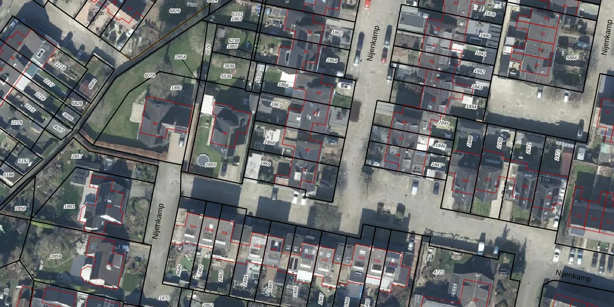 Nijenkamp 92 is gelegen op kadastraal perceel DTN03C1868. Deze kadastrale aanduiding is uniek en wordt gebruikt door het Kadaster om eigendomsrechten en andere zakelijke rechten vast te leggen. Het perceel maakt onderdeel uit van de kadastrale gemeente Druten.