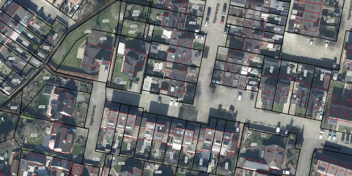 Het perceel waarop Nijenkamp 94 staat heeft een oppervlakte van 303 m². Dit is een groot perceel. De perceeloppervlakte wordt geregistreerd door het Kadaster. Gedetailleerde informatie over de maten van dit perceel kunt u vinden in het rapport Kadastrale kaart met maatvoering van Nijenkamp 94.