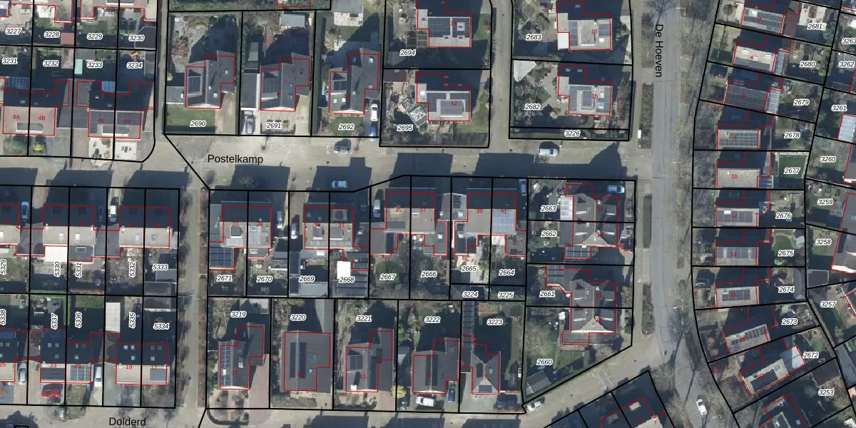 Postelkamp 37 is gelegen op kadastraal perceel DTN03C2666. Deze kadastrale aanduiding is uniek en wordt gebruikt door het Kadaster om eigendomsrechten en andere zakelijke rechten vast te leggen. Het perceel maakt onderdeel uit van de kadastrale gemeente Druten.