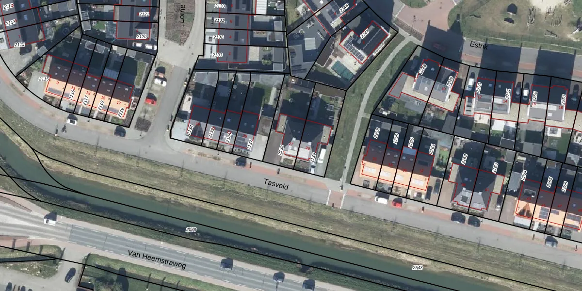 Gebruik de zoekbalk of klik op een perceel voor informatie over de adressen binnen dit perceel.