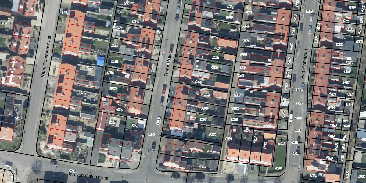 Gebruik de zoekbalk of klik op een perceel voor informatie over de adressen binnen dit perceel.