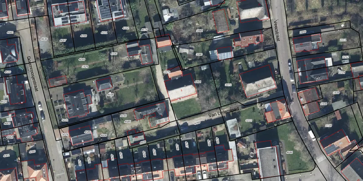 Van Delenspad 3 is gelegen op kadastraal perceel DTN03B4494. Deze kadastrale aanduiding is uniek en wordt gebruikt door het Kadaster om eigendomsrechten en andere zakelijke rechten vast te leggen. Het perceel maakt onderdeel uit van de kadastrale gemeente Druten.