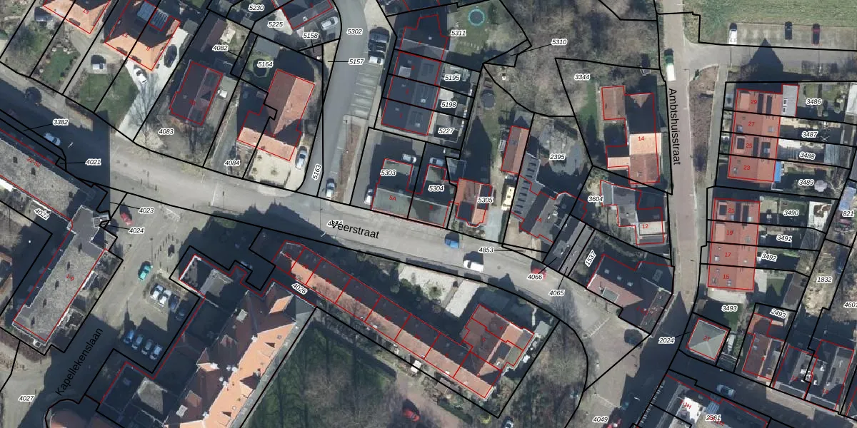 Veerstraat 5 is gelegen op kadastraal perceel DTN03B5304. Deze kadastrale aanduiding is uniek en wordt gebruikt door het Kadaster om eigendomsrechten en andere zakelijke rechten vast te leggen. Het perceel maakt onderdeel uit van de kadastrale gemeente Druten.