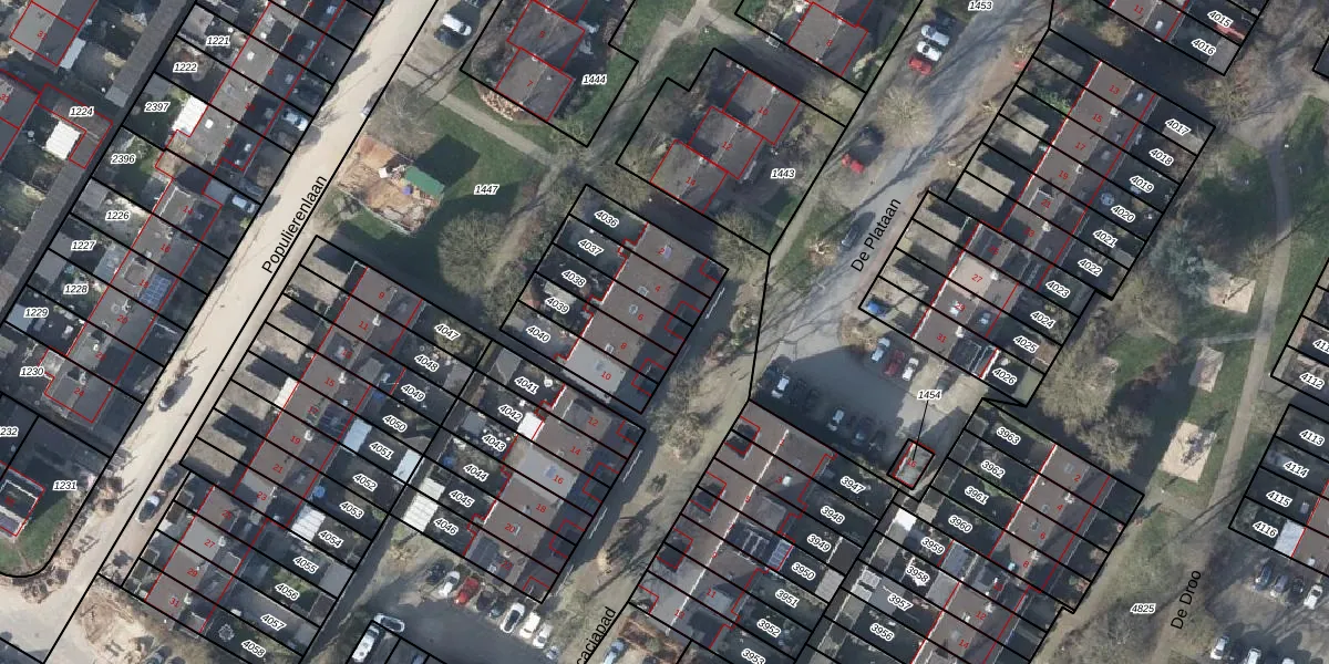 Het perceel waarop het adres ligt is DVN00-E-4038. De afkorting 'DVN00' staat voor kadastrale gemeente Duiven. De gemiddelde perceelgrootte in Duiven is 2659,42 m². Dit perceel is kleiner: de perceeloppervlakte bedraagt 126 m². Het kleinste perceel in de kadastrale gemeente is 0 m² groot. De grootste perceeloppervlakte is 22,4 ha. Er zijn geen andere adressen aanwezig op het perceel. In de Basisregistratie Kadaster (BRK) werden de grenzen van het perceel geregistreerd op 13-09-2005.