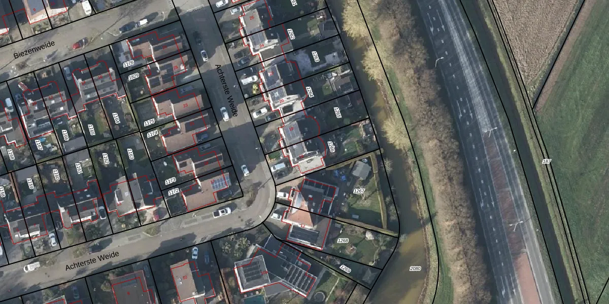 Het perceel waarop Achterste Weide 16 staat heeft een oppervlakte van 391 m². Dit is een groot perceel. De perceeloppervlakte wordt geregistreerd door het Kadaster. Gedetailleerde informatie over de maten van dit perceel kunt u vinden in het rapport Kadastrale kaart met maatvoering van Achterste Weide 16.