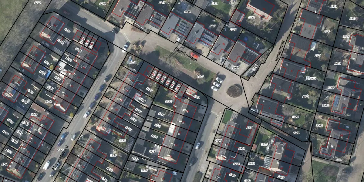 Het perceel waarop Beatrixstraat 43 staat heeft een oppervlakte van 311 m². Dit is een groot perceel. De perceeloppervlakte wordt geregistreerd door het Kadaster. Gedetailleerde informatie over de maten van dit perceel kunt u vinden in het rapport Kadastrale kaart met maatvoering van Beatrixstraat 43.