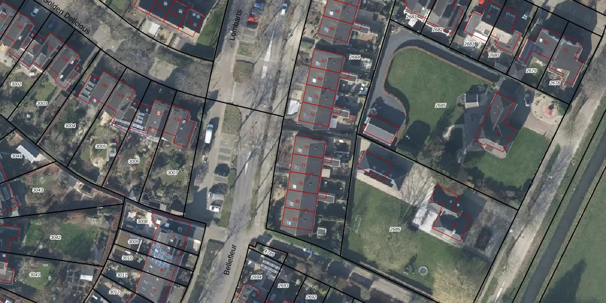 Het perceel waarop Bellefleur 75 staat heeft een oppervlakte van 2590 m². Dit is een zeer groot perceel. De perceeloppervlakte wordt geregistreerd door het Kadaster. Gedetailleerde informatie over de maten van dit perceel kunt u vinden in het rapport Kadastrale kaart met maatvoering van Bellefleur 75.