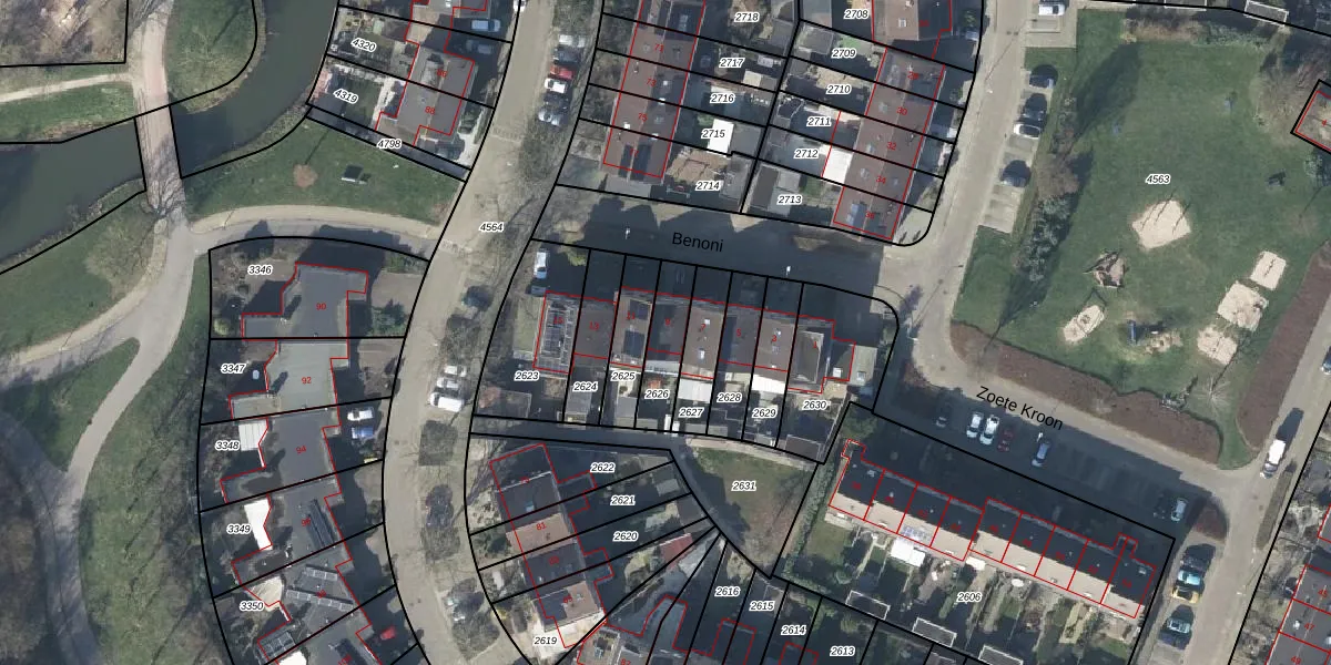Benoni 9 is gelegen op kadastraal perceel DVN00E2626. Deze kadastrale aanduiding is uniek en wordt gebruikt door het Kadaster om eigendomsrechten en andere zakelijke rechten vast te leggen. Het perceel maakt onderdeel uit van de kadastrale gemeente Duiven.