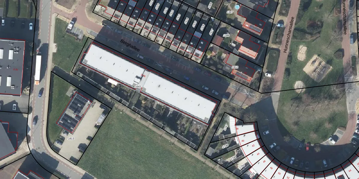 Berghallee 14 is gelegen op kadastraal perceel GSN00B1641. Deze kadastrale aanduiding is uniek en wordt gebruikt door het Kadaster om eigendomsrechten en andere zakelijke rechten vast te leggen. Het perceel maakt onderdeel uit van de kadastrale gemeente Groessen en Loo.