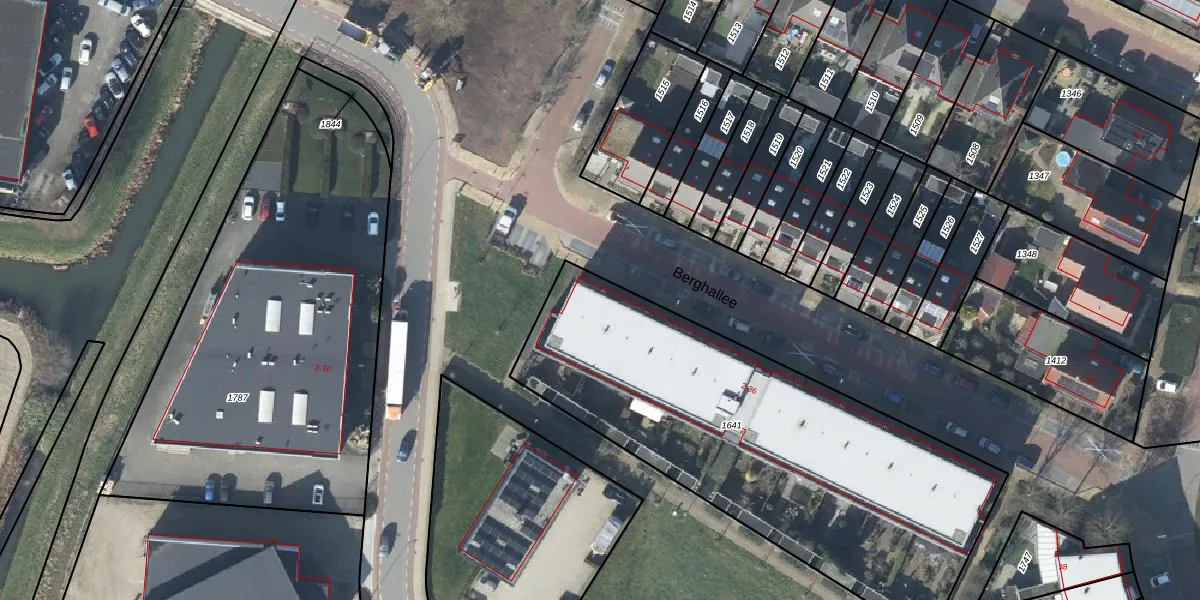 Het perceel waarop Berghallee 2 staat heeft een oppervlakte van 2140 m². Dit is een zeer groot perceel. De perceeloppervlakte wordt geregistreerd door het Kadaster. Gedetailleerde informatie over de maten van dit perceel kunt u vinden in het rapport Kadastrale kaart met maatvoering van Berghallee 2.