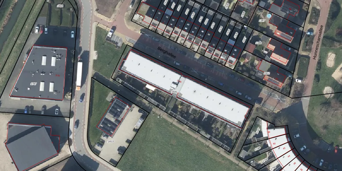 Het perceel waarop Berghallee 26 staat heeft een oppervlakte van 2140 m². Dit is een zeer groot perceel. De perceeloppervlakte wordt geregistreerd door het Kadaster. Gedetailleerde informatie over de maten van dit perceel kunt u vinden in het rapport Kadastrale kaart met maatvoering van Berghallee 26.