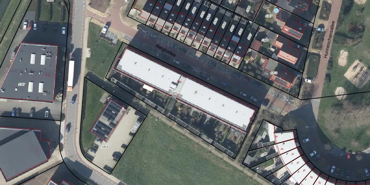 Het perceel waarop Berghallee 28 staat heeft een oppervlakte van 2140 m². Dit is een zeer groot perceel. De perceeloppervlakte wordt geregistreerd door het Kadaster. Gedetailleerde informatie over de maten van dit perceel kunt u vinden in het rapport Kadastrale kaart met maatvoering van Berghallee 28.