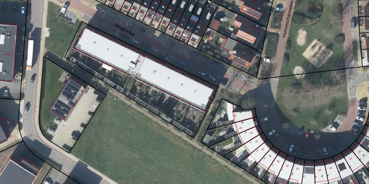 Het perceel waarop Berghallee 34 staat heeft een oppervlakte van 2140 m². Dit is een zeer groot perceel. De perceeloppervlakte wordt geregistreerd door het Kadaster. Gedetailleerde informatie over de maten van dit perceel kunt u vinden in het rapport Kadastrale kaart met maatvoering van Berghallee 34.