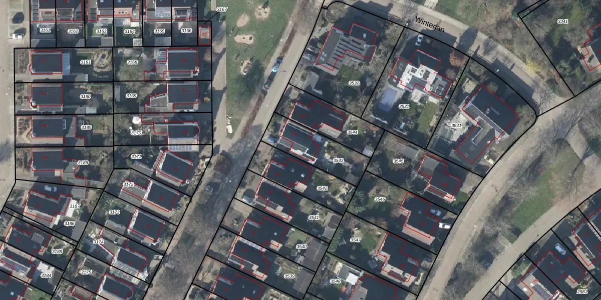 Gebruik de zoekbalk of klik op een perceel voor informatie over de adressen binnen dit perceel.