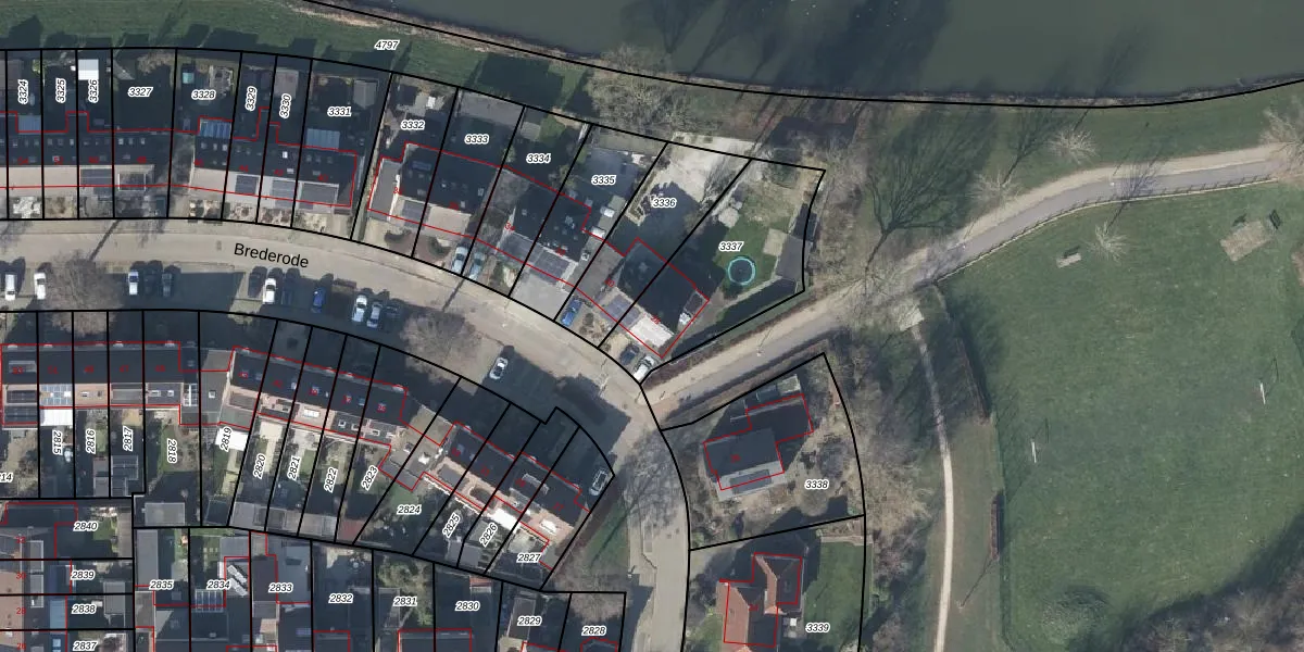 Brederode 28 is gelegen op kadastraal perceel DVN00E3337. Deze kadastrale aanduiding is uniek en wordt gebruikt door het Kadaster om eigendomsrechten en andere zakelijke rechten vast te leggen. Het perceel maakt onderdeel uit van de kadastrale gemeente Duiven.