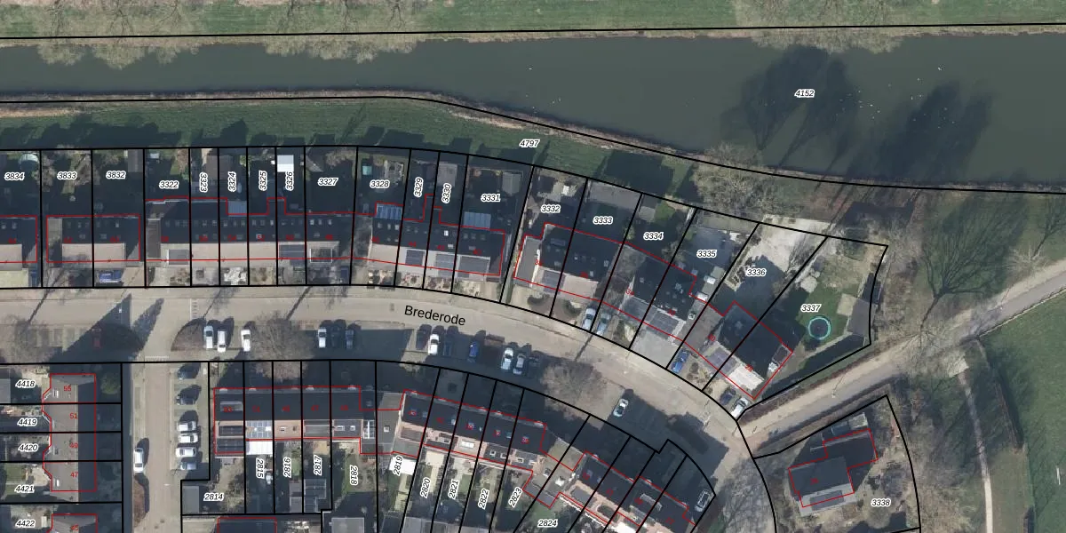 Brederode 38 is gelegen op kadastraal perceel DVN00E3332. Deze kadastrale aanduiding is uniek en wordt gebruikt door het Kadaster om eigendomsrechten en andere zakelijke rechten vast te leggen. Het perceel maakt onderdeel uit van de kadastrale gemeente Duiven.
