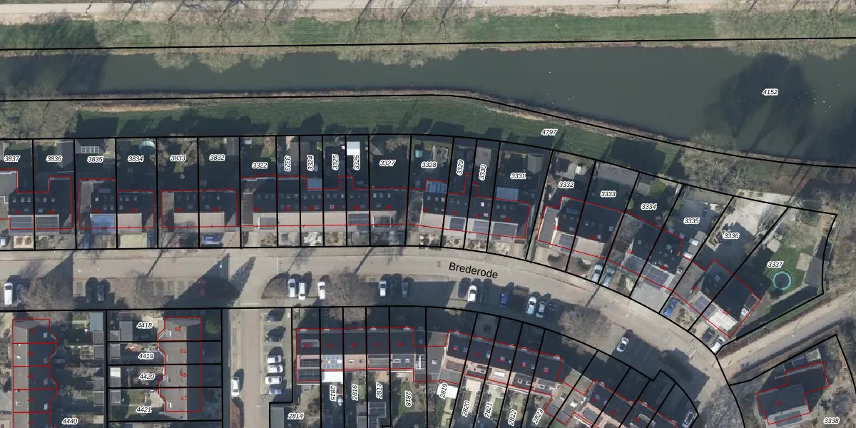 Het perceel waarop Brederode 46 staat heeft een oppervlakte van 237 m². Dit is een middelgroot perceel. De perceeloppervlakte wordt geregistreerd door het Kadaster. Gedetailleerde informatie over de maten van dit perceel kunt u vinden in het rapport Kadastrale kaart met maatvoering van Brederode 46.