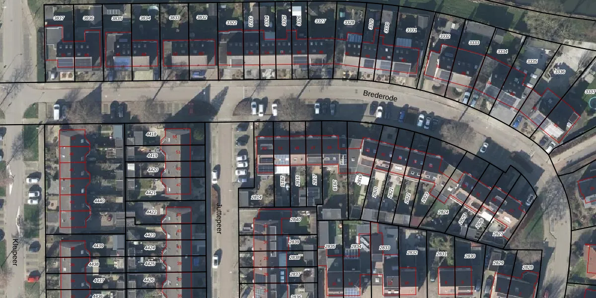 Gebruik de zoekbalk of klik op een perceel voor informatie over de adressen binnen dit perceel.