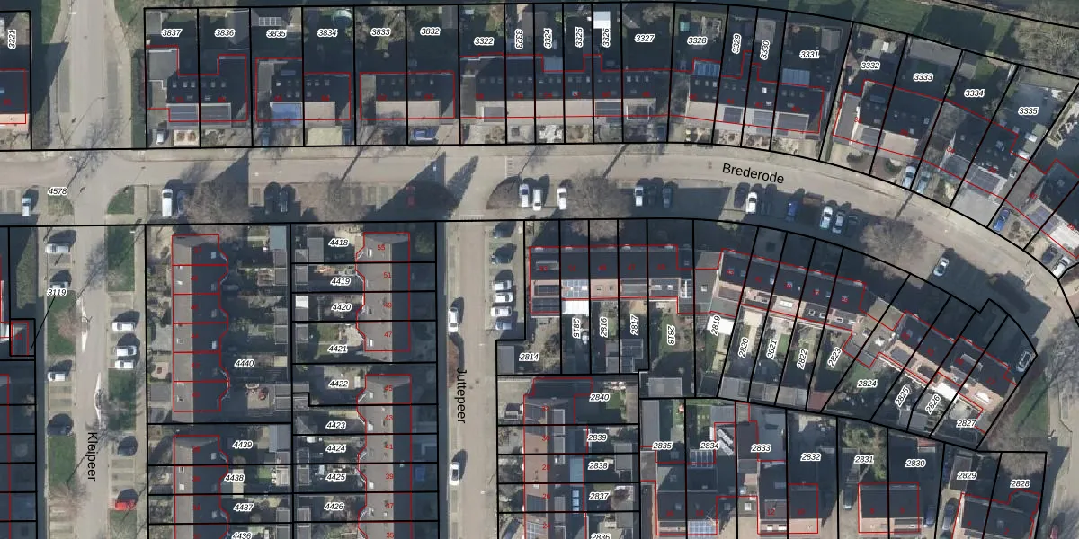 Het perceel waarop Brederode 53 staat heeft een oppervlakte van 224 m². Dit is een middelgroot perceel. De perceeloppervlakte wordt geregistreerd door het Kadaster. Gedetailleerde informatie over de maten van dit perceel kunt u vinden in het rapport Kadastrale kaart met maatvoering van Brederode 53.