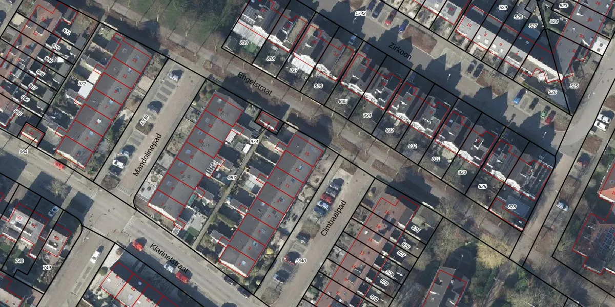 Cimbaalpad 15 is gelegen op kadastraal perceel DVN00D987. Deze kadastrale aanduiding is uniek en wordt gebruikt door het Kadaster om eigendomsrechten en andere zakelijke rechten vast te leggen. Het perceel maakt onderdeel uit van de kadastrale gemeente Duiven.