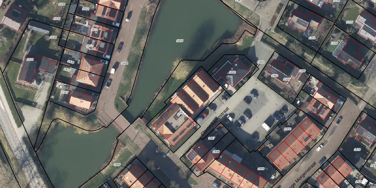 Closterkampstraat 1 is gelegen op kadastraal perceel DVN00D1752. Deze kadastrale aanduiding is uniek en wordt gebruikt door het Kadaster om eigendomsrechten en andere zakelijke rechten vast te leggen. Het perceel maakt onderdeel uit van de kadastrale gemeente Duiven.