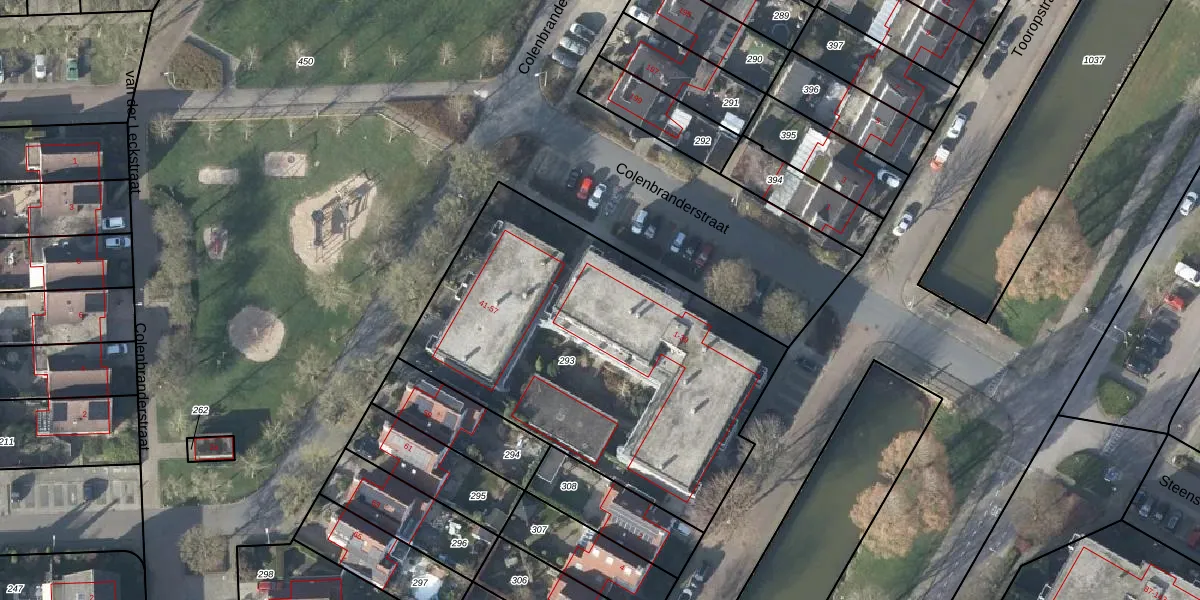 Het perceel waarop Colenbranderstraat 37 staat heeft een oppervlakte van 1935 m². Dit is een zeer groot perceel. De perceeloppervlakte wordt geregistreerd door het Kadaster. Gedetailleerde informatie over de maten van dit perceel kunt u vinden in het rapport Kadastrale kaart met maatvoering van Colenbranderstraat 37.