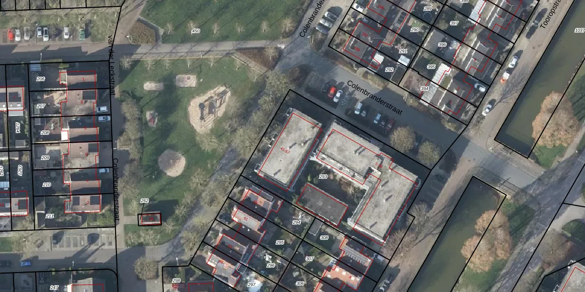 Het perceel waarop Colenbranderstraat 47 staat heeft een oppervlakte van 1935 m². Dit is een zeer groot perceel. De perceeloppervlakte wordt geregistreerd door het Kadaster. Gedetailleerde informatie over de maten van dit perceel kunt u vinden in het rapport Kadastrale kaart met maatvoering van Colenbranderstraat 47.