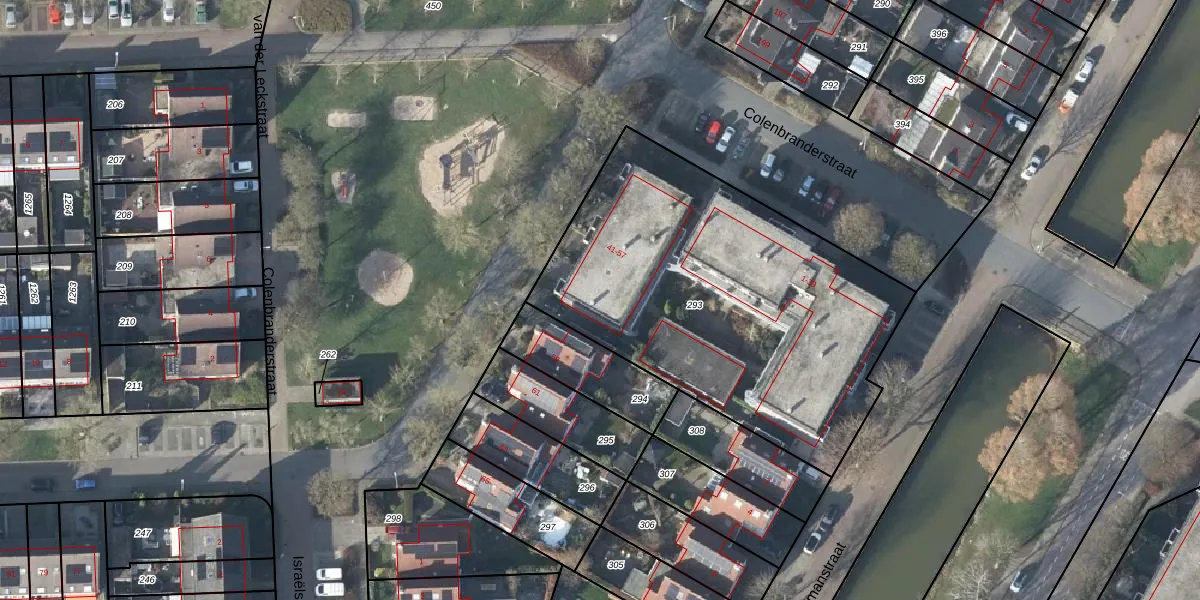 Het perceel waarop Colenbranderstraat 57 staat heeft een oppervlakte van 1935 m². Dit is een zeer groot perceel. De perceeloppervlakte wordt geregistreerd door het Kadaster. Gedetailleerde informatie over de maten van dit perceel kunt u vinden in het rapport Kadastrale kaart met maatvoering van Colenbranderstraat 57.