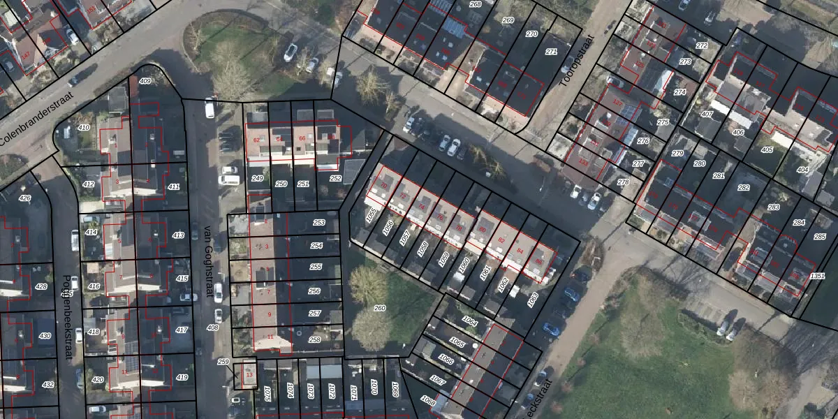 Colenbranderstraat 74 is gelegen op kadastraal perceel DVN00G1057. Deze kadastrale aanduiding is uniek en wordt gebruikt door het Kadaster om eigendomsrechten en andere zakelijke rechten vast te leggen. Het perceel maakt onderdeel uit van de kadastrale gemeente Duiven.