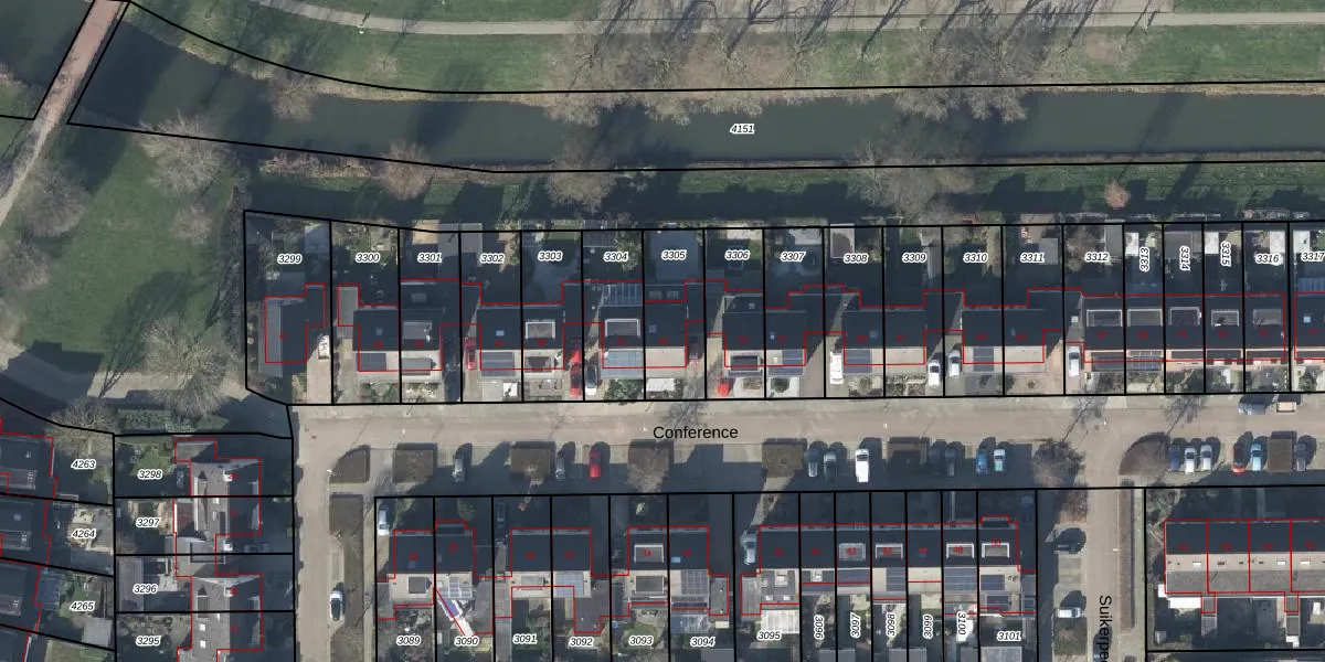 Het perceel waarop Conference 53 staat heeft een oppervlakte van 238 m². Dit is een middelgroot perceel. De perceeloppervlakte wordt geregistreerd door het Kadaster. Gedetailleerde informatie over de maten van dit perceel kunt u vinden in het rapport Kadastrale kaart met maatvoering van Conference 53.