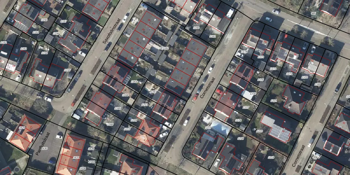 Het perceel waarop Cornetstraat 10 staat heeft een oppervlakte van 1835 m². Dit is een zeer groot perceel. De perceeloppervlakte wordt geregistreerd door het Kadaster. Gedetailleerde informatie over de maten van dit perceel kunt u vinden in het rapport Kadastrale kaart met maatvoering van Cornetstraat 10.