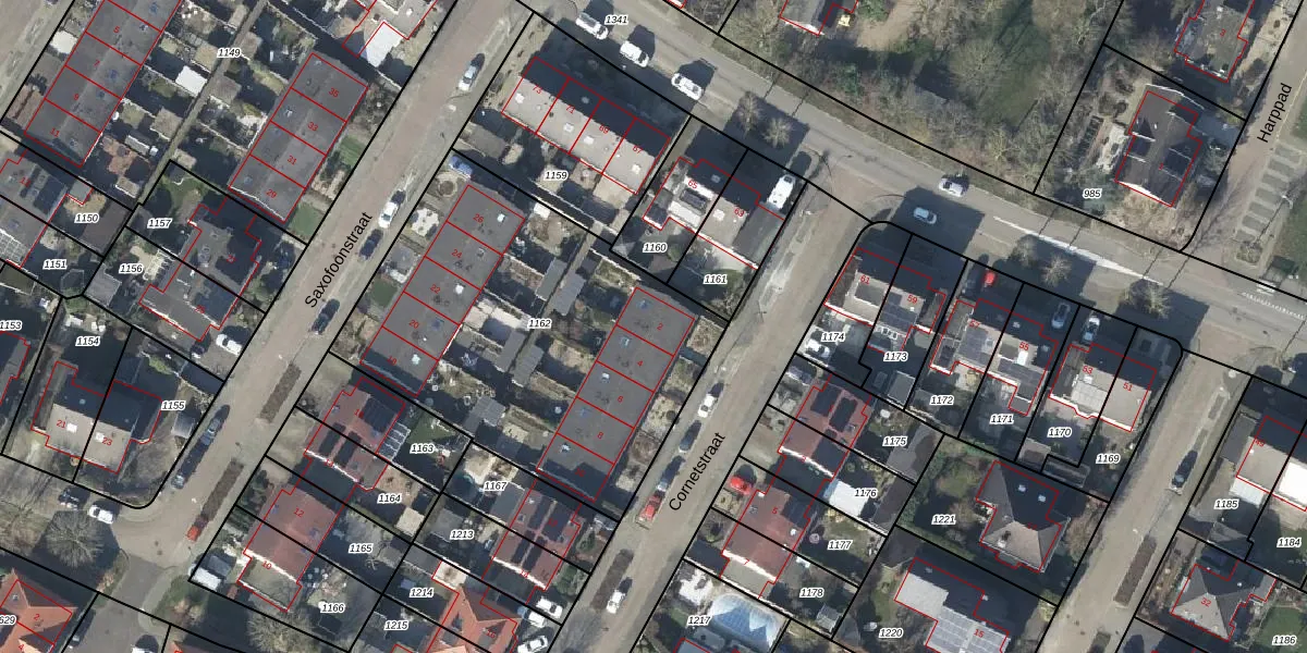 Het perceel waarop Cornetstraat 2 staat heeft een oppervlakte van 1835 m². Dit is een zeer groot perceel. De perceeloppervlakte wordt geregistreerd door het Kadaster. Gedetailleerde informatie over de maten van dit perceel kunt u vinden in het rapport Kadastrale kaart met maatvoering van Cornetstraat 2.